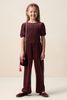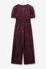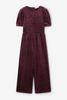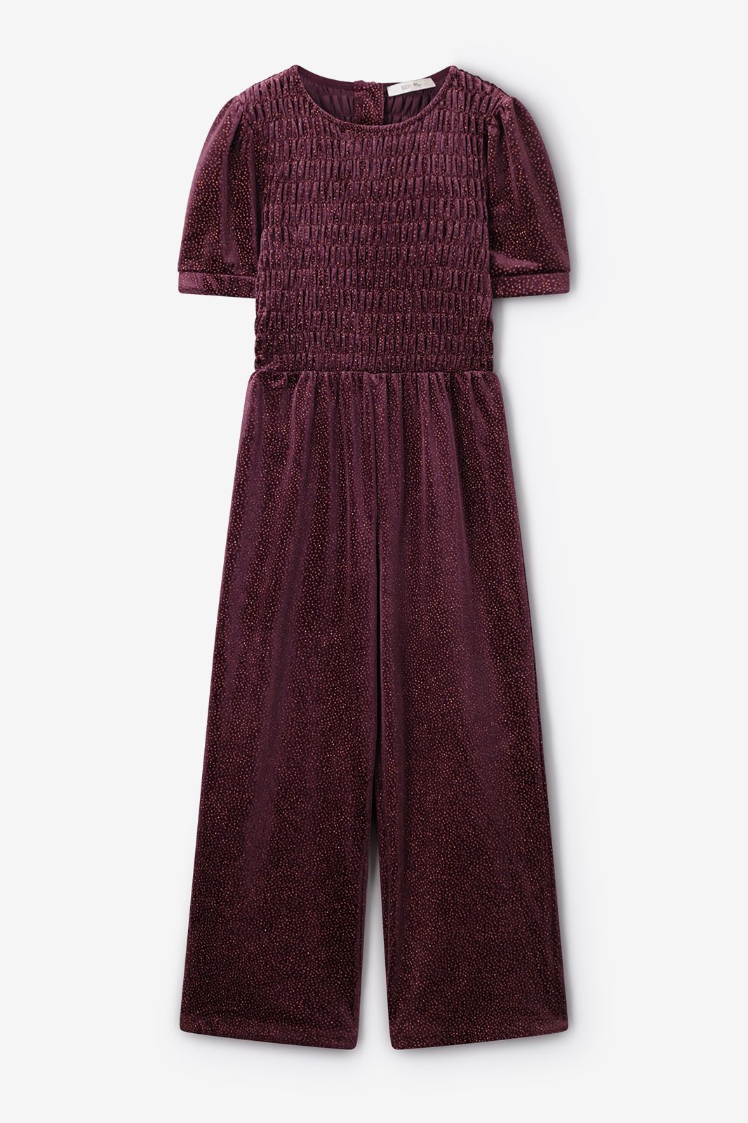 Donkerpaarse velvet jumpsuit van Sissy-Boy. De jumpsuit heeft korte mouwen, een hoge ronde halslijn, een regular fit en wijd uitlopende broekspijpen. Daarnaast heeft het een donkerpaarse kleur, een smock detail aan de bovenzijde, velvet stof kwaliteit met een all-over stippen patroon. Materiaal: 94% polyester, 6% elastaan.