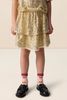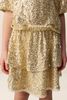 Goud pailletten rokje van Sissy-Boy. Het rokje heeft een hoge taille, kort model, ruffles en een elastische tailleband. Verder heeft het rokje all-over gouden pailletten. Materiaal: 95% polyester, 5% elastaan.