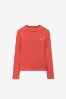 Lichtrode longsleeve met mock-hals van Sissy-Boy. De longsleeve heeft een ribstof, lange mouwen, een mock-hals en een flamingo detail op de borst. Materiaal: 100% katoen.