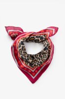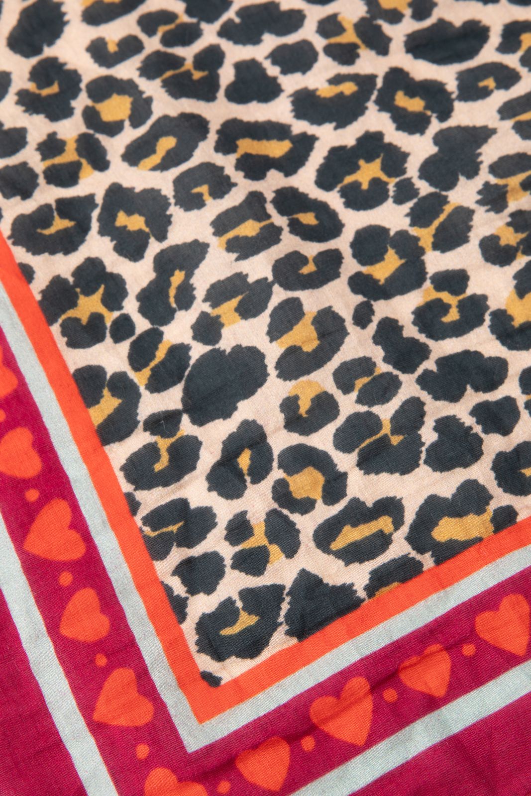 Rode sjaal met leopard print van Sissy-Boy Deze sjaal heeft een glanzende look en is bedrukt met een all-over hartjes en leopard print. Afmeting: 52 x 54 cm. Materiaal: 100% katoen.