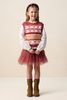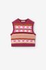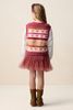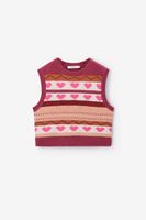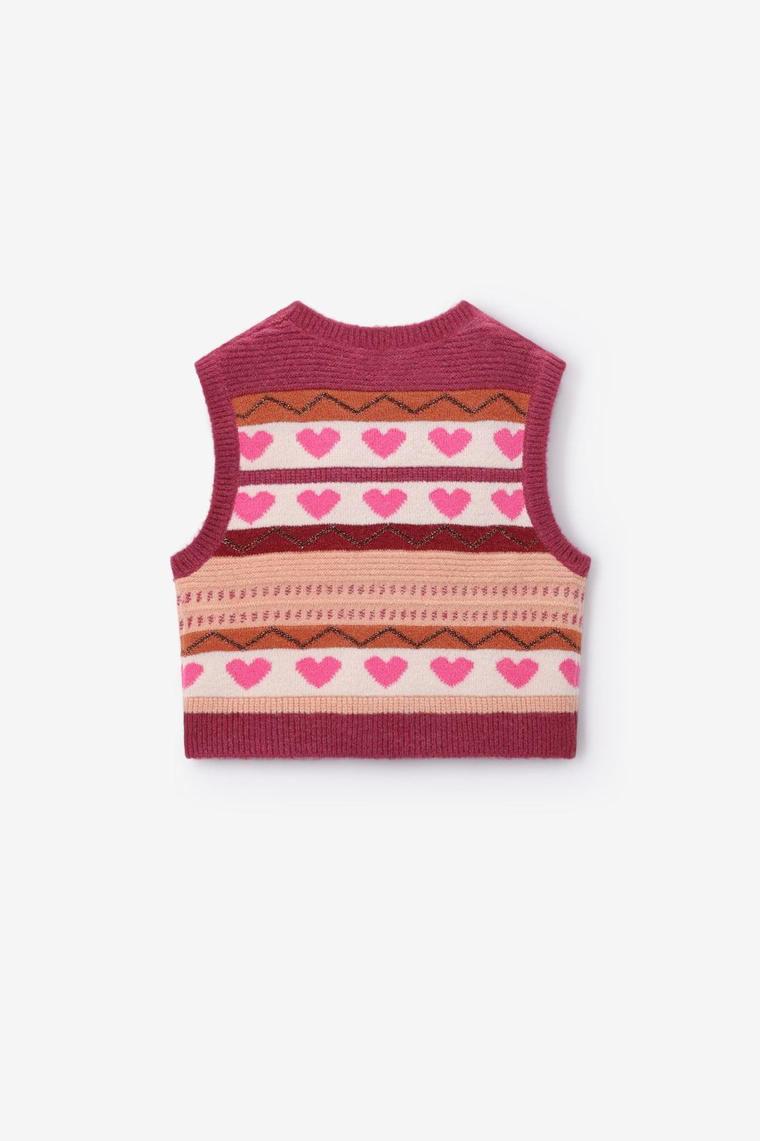 Roze jacquard spencer met hartjes van Sissy-Boy. De mouwloze spencer heeft een ronde halslijn, regular fit en een multicolour strepen patroon met hartjes in de stof geweven. Daarnaast heeft het lurex glitter details in een brons kleur. Materiaal: 58% acryl, 29% polyamide, 6% polyester, 6% wol, 3% elastaan, 3% metaaldraad.